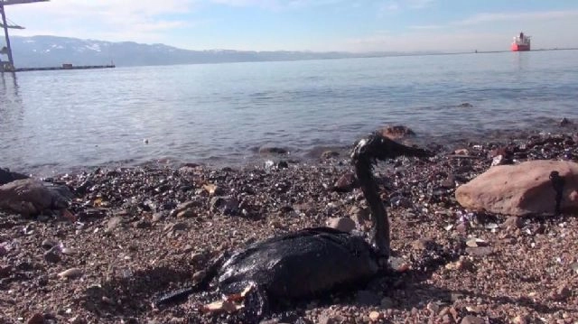 Kocaeli'nin Dilovası ilçesinde bulunan bir limanda yükleme sırasında bir tankerden sızdığı iddia edilen tonlarca akaryakıt deniz yüzeyini kapladı. Olayın Dilovası Diliskelesi Mahallesinde bulunan bir limanda meydana geldiği iddia edildi. Edinilen bilgiye göre, Diliskelesi'nde bulunan bir limandan fuel-oil nakliyesi yapan bir tankerden denize tonlarca yakıt sızdı. Denize sızan yakıtın lodosun da etkisiyle İzmit Körfezi'ne yayılması sonucu deniz hayvanları katrana bulandı. Katrana bulanarak zor da olsa kıyıya çıkan bazı deniz kuşları ise hareket edemez hale geldi. Sızmanın etkilediği alanların belirlenmesi için Kocaeli Büyükşehir Belediyesi Deniz Kontrol Uçağı ve Deniz Temizleme Gemisi ile bölgede inceleme başlatıldı. Milli Parklar, Kocaeli Büyükşehir ve Körfez Belediyesi ekiplerince toplanan deniz kuşlarının ise temizlenmeye başlandığı öğrenildi.Kıyıda hareketsiz bir şekilde bekleyen deniz kuşlarını gören bazı hayvanseverler ise kuşları temizlemek için mücadele etti. Kirlenme nedeniyle çok sayıda hayvanın zarar gördüğünü dile getiren dalgıç Yasin Topçu, "Biz 3 gündür bu bölgede dalmaya çalışıyoruz. 3 gündür göründüğü gibi manzara bu. Bir sürü karabatak ölüsü gördük. Her yeri tam belirleyemediğimiz bir malzeme ile kaplı. Hayvanlar yürüyemiyor, uçamıyor. Kendilerini zar zor karaya atmışlar. Tüyleri ayrışmıyor. Ne yapacağımızı bilemeden herkese haber veriyoruz. Fotoğraflarını çekerek sosyal medyadan paylaşıyoruz. Hayvanseverleri buraya yardıma bekliyoruz" dedi.Olayın doğal bir felaket olduğunu belirten dalgıç Yasin Topçu, "Nasıl müdahale edilir, ne yapılır bilemiyoruz. Biz durumu belediyeye haber verdik. Sosyal medyadan fotoğraflar atarak tepki bekliyoruz. Kocaeli'nin her yeri böyle. Hereke'den İzmit merkezi, Karamürsel'e kadar durum böyle. Suyun içindekileri bilemiyoruz. Bu suyun üstündeki hal" diye konuştu.Dalgıçlık mesleklerini yerine getiremediklerini ifade eden Topçu, "Denizin yüzeyinde bu pislik devam ediyor. Suyun altında da devam ediyor. Bizim sağlığımız da sıkıntıya girebileceği için dalışımıza izin verilmiyor" ifadelerini kaydetti.(Gürcan Yılmaz - İsmail Kurt/İHA)