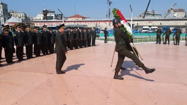 Jandarma Teşkilatının 178'inci kuruluş yıl dönümü dolayısıyla İstanbul İl Jandarma Komutanlığı tarafından Taksim Meydanı Cumhuriyet Anıtı önünde tören düzenlendi. Jandarma Teşkilatının 178. kuruluş yıl dönümü nedeniyle İstanbul İl Jandarma Komutanlığı tarafından Taksim Meydanında düzenlenen törenle Cumhuriyet Anıtına çelenk bırakıldı. İstanbul İl Jandarma Komutanı Tuğgeneral Hüseyin Kurtoğlu'nun da katıldığı tören, saygı duruşu ve İstiklal Marşı'nın okunmasının ardından son buldu.(Caner Sönmez - Murat Horoz/İHA)