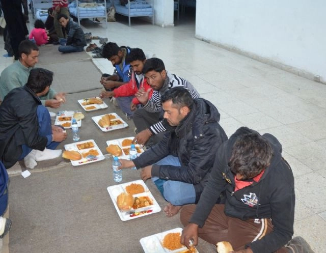 Van'ın Başkale ilçesinde, yurda kaçak yollardan giriş yapan 19 kişiye, Mehmetçik tarafından sıcak yemek ikram edildi.