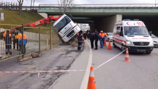 İstanbul Kadıköy'de İstanbul Büyükşehir Belediyesine (İBB) ait vinç ağırlığa dayanamayarak devrildi. Vincin otoyol yerine yol kenarına devrilmesi faciayı önlerken, yayalar ise çıkan gürültüyle büyük panik yaşadı. Kadıköy Uzunçayır metrobüs durağında öğle saatlerinde faciadan dönüldü. Yol kenarındaki demir bariyerleri kaldırmak için metrobüs durağına gelen İBB'ye ait vinç yüklediği ağırlığı taşıyamadı. Vinç devrilerek yol kenarına düştü. Vincin otoyola devrilmemesi büyük bir faciayı önledi. Bu sırada metrobüs durağında yaya olarak giden vatandaşlar vincin devrilmesi sırasında çıkan gürültü nedeniyle büyük panik yaşadı. Öte yandan, vincin kaldırılması sırasında yoğun trafik oluştu.(Murat Solak/İHA)