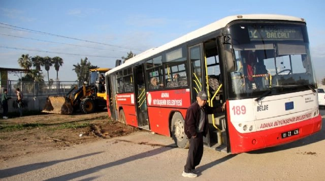 Adana'da kadın şoför yolu şaşırıp farklı güzergaha girince belediye otobüsü çamura saplandı. Yolcular 1 saat boyunca otobüsün çamurdan çıkartılmasını beklemek zorunda kaldı.
