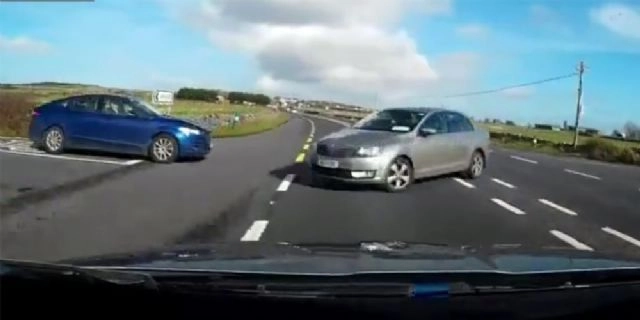 İrlanda'da kadın sürücünün karşı yönden gelen araçları hesaba katmadan yaptığı kontrolsüz dönüş, feci bir kazaya yol açtı.