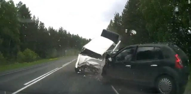 İki otomobil kafa kafaya çarpıştı, feci kaza görüntüye böyle yansıdı.Rusya'da ehliyetsiz birinin kullandığı araç kontrolden çıkarak ters şeride girdi ve kendi şeridinde seyreden otomobil ile kafa kafaya çarpıştı. Çarpmanın etkisiyle iki otomobil de adeta hurdaya döndü. Feci kazada ters şeride giren aracın sürücüsü hayatını kaybetti.