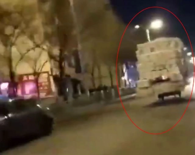 Bu gördüğünüz bir kamyon değil motosiklet.Görüntü Çin'den. Motosiklet o kadar yüklü ki adeta bir kamyonu andırıyor. Sürücü ise yolunu yüklerin arasında oluşturulan küçük pencereden görüyor. Bu sıra dışı ve tehlikeli yolculuğun nasıl bittiğiyse bilinmiyor.