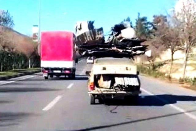 Gaziantep'te trafikte üzerine ve içerisine yüklenen yükle adeta bir kamyonu andıran otomobil görenleri şaşırttı. Gaziantep'te üzerine yüklenen yükle adeta kamyonu andıran otomobil diğer sürücüleri hayrete düşürdü. Bir vatandaşın cep telefonu ile kaydettiği görüntülerde plakası belirlenemeyen bir otomobilin üzerine yüklediği hurda malzemelerle trafikte diğer araçlarla aynı anda seyrettiği görülüyor. Adeta kazaya davetiye çıkaran otomobil, daha sonra gözden kayboldu.
