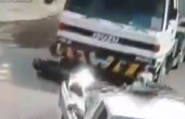 Kamyonet motosikletliyi böyle ezdi.