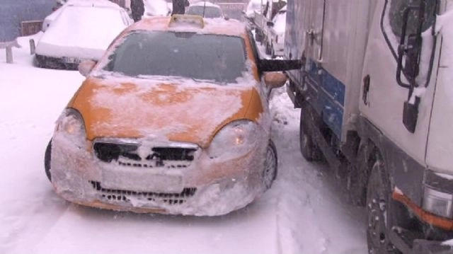 İstanbul'da yolda kalan bir taksi sürücüsünün, buz tutan yolda kamyonete çarpmamak ve daha rahat ilerleyebilmek için elini kullandığı anlar ilginç görüntüler oluşturdu. İstanbul'da etkili olan kar yağışı trafik kazalarını da beraberinde getirdi. Yoğun kar yağışı ve buz tutan yollar nedeniyle kazalar kaçınılmaz hale geldi. Beyoğlu Piyalepaşa Bulvarı'ndan kayganlaşan yol nedeniyle kontrolünü kaybeden ticari taksiye arkadan gelen araç çarptı. Kazada yaralanan taksi şoförü ambulansla hastaneye kaldırıldı. O an takside bulunan yolcu Ahmet Ekmen de olay yerine gelen polislere kazayla ilgili bilgiler verdi.Kar yağışı nedeniyle çok sayıda araç mahsur kaldı. Özellikle ara sokaklarda yaşanan kar yoğunluğu nedeniyle bazı sürücüler araçlarını kontrol etmede zorluk yaşadı.Yolda kalan bir taksi şoförünün yöntemi ise ilginç görüntüler oluşturdu. Taksi şoförünün buz tutan yolda kamyonete çarpmamak ve daha rahat ilerleyebilmek için elini kullanması kameralara yansıdı.(Sadık Kahraman - Serdal Altıntepe / İHA)