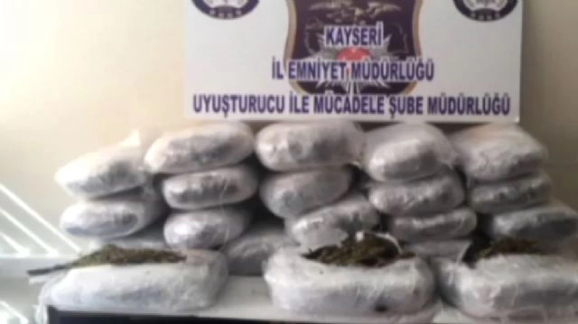Kayseri'de Uyuşturucu ile Mücadele Şube Müdürlüğü ekipleri tarafından yapılan uygulamada, durdurulan bir kamyonetin zulasından 66 kilo esrar ele geçirildi.