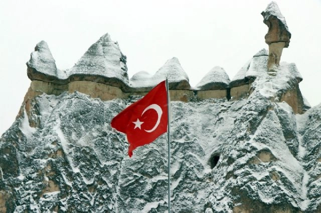 Türkiye'nin önemli turizm merkezlerinden olan Kapadokya bölgesinde gece saatlerinde başlayan kar yağışı peribacalarını beyaza bürüdü.