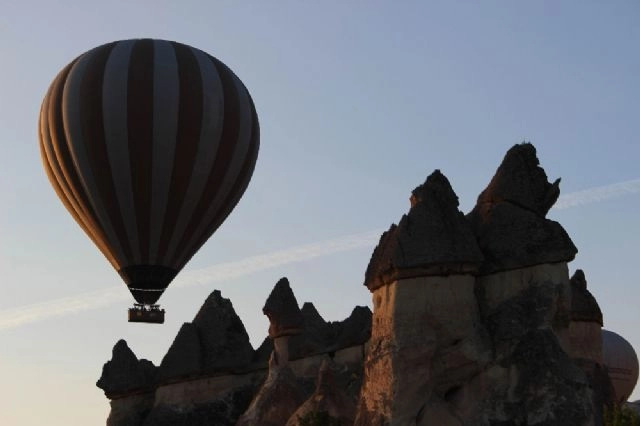 Türkiye'nin en önemli turizm merkezlerinden olan Kapadokya'da dünyanın çeşitli ülkelerinden gelen turistler balon turu ile peribacalarını kuş bakışı izlemenin mutluluğunu yaşıyor. Türkiye'nin peribacaları ile ünlü ve sıcak hava balonu ile turlar düzenlenen tek turizm merkezi olan Kapadokya'da dünyanın çeşitli ülkelerinden gelen turistler gökyüzünden peribacalarını izlemenin keyfini yaşıyor. Sabahın erken saatlerinde başlayan uçuşlarda, yolcular gün doğumuna havada şahit olurken, tan vaktinin tüm güzelliğini ortaya çıkardığı Ürgüp, Göreme, Ortahisar, Uçhisar, Avanos ve Nevşehir'i havadan panaromik olarak görme şansını da yakalıyorlar."BALON DÜNYANIN EN GÜVENLİ VE EN BASİT HAVA TAŞITIDIR"Balon görevlisi Burak Tuz, Kapadokya'ya balon turuna katılmak için dünyanın dört bir yanından turistleri misafir ediyoruz dedi. Tuz, "Üç yıldır balon pilotu olarak görev yapmaktayım. Balon turlarına ilgi ülkemizin genel turizm halinden dolayı biraz düşük. Fakat dünyanın her tarafından misafirlerimiz gelmektedir. Balon turlarımız bir ila bir buçuk saat arasında sürüyor. Dünyanın her tarafından misafirlerimiz geliyor. Asya, Avrupa olmak üzere her bölgeden Kapadokya'ya balon turlarına katılmak üzere turistler geliyor. Balon dünyanın en güvenli ve en basit hava taşıtıdır. Balon turlarının 200 ila 250 yıllık bir geçmişi vardır. Hiçbir şekilde korkulacak bir şey yoktur. Herkes gelip balon turlarına gönül rahatlığı ile binebilir" dedi. (Coşkun Sağlamdin / İHA)