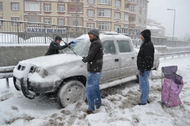 Dün akşam saatlerinde İstanbul'u etkisi altına alan yoğun kar yağışı sebebiyle oluşan trafikte araçlarını bırakan sürücüler günün aydınlanmasıyla arabalarının başına koştu.Dün akşam saatlerinde başlayarak İstanbul'u etkisi altına alan yoğun kar yağışı sebebiyle oluşan trafikte araçlarını bırakmak zorunda kalan sürücüler günün aydınlanmasıyla araçlarını almak için arabalarını bıraktıkları noktalara geldi. Akşam saatlerinde aracını 03 Esenler Mevkii'ne bırakan sürücü Hasan Türken, sabah olmasıyla aynı noktaya gelerek aracını hareket ettirmek için uğraştı. Türken, aracının üzerinde biriken karları temizlemeye çalışırken yoğun kar yağışı sebebiyle donan aracını hareket ettirirken zor anlar yaşadı."SABAH GELDİM 1 SAATTİR UĞRAŞIYORUM DONMUŞ"Kar yağışı sebebiyle aracını yolda bırakarak evine giden sürücü Hasan Türken, "Dün akşam saat 07.00'de Çağlayan'dan çıktık. Bu kadar yağacağını hiç tahmin etmedik, kaya kaya Çağlayan'dan buraya 3 saatte geldik. Trafikten gidemiyorum sağa çektim. Sabah da geldim 1 saattir uğraşıyorum donmuş, çalışmıyor. Aç kapa, aç kapa yeni yeni çalıştırdım" diye konuştu.Öte yandan, Mahmutbey Gişeler'de çok sayıda araç sürücüsü yoğun kar yağışı nedeniyle araçlarını yolda bırakmak zorunda kaldı.(Tugay Saday / İHA)
