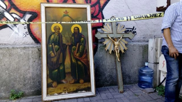 Beyoğlu Karaköy Latin Katolik Kilisesine gelen 4 hırsız, güpegündüz kiliseden heykel, haç ve çok sayıda tablo ile çeşitli dini kitaplar çaldı. Hırsızlık anları güvenlik kameralarına saniye saniye yansıdı.