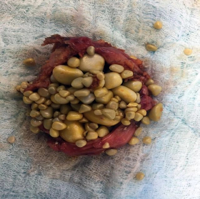 Bolu'da, şiddetli karın ağrısı şikayetiyle hastaneye giden kadının safra kesesinde taş tespit edildi. Ameliyata alınan kadının safra kesesinden 157 adet taş çıktı.