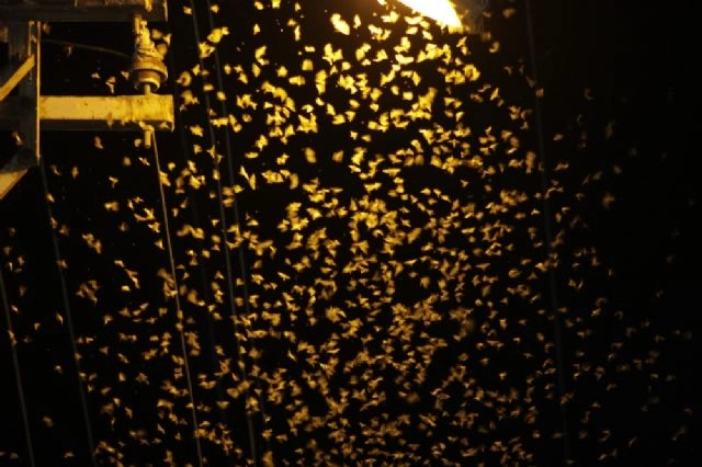 Şırnak'ın Beytüşşebap ilçesinde vatandaşlar, gündüz sıcaklık, akşamları ise sinek ve kelebek istilası nedeniyle evlerine hapsoldu. Termometrelerin 42 dereceyi gösterdiği Beytüşşebap'ta, gündüzleri sıcaktan korunmak için evlerinde geçiren vatandaşlar, akşamları ise kelebek istilası nedeniyle sokağa çıkamıyor. Vatandaşlardan Necat Gökçe, evlerine hapsolduklarını belirterek, "Gündüz sıcaklar yüzünden akşam ise böcek ve kelebekler yüzünden yürüyemiyoruz. Her yıl bu vakitlerde sıcak havaların etkisiyle zor anlar yaşıyoruz. Bu yüzden markete bile gidemiyorum. Hava sıcaklığı böyle devam ettiği sürece bizim çilemiz de devam edecek" dedi. (Serdar Gükçe / İHA)