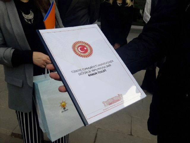 CHP Genel Başkanı Kemal Kılıçdaroğlu'nun cumhurbaşkanlığı hükümet sisteminden haberinin olmadığının ortaya çıktığını belirten AK Parti Gençlik Kolları Başkanı Melih Ecertaş ve beraberindeki üyeler, kendisine anayasa değişiklik metnini gönderdi.