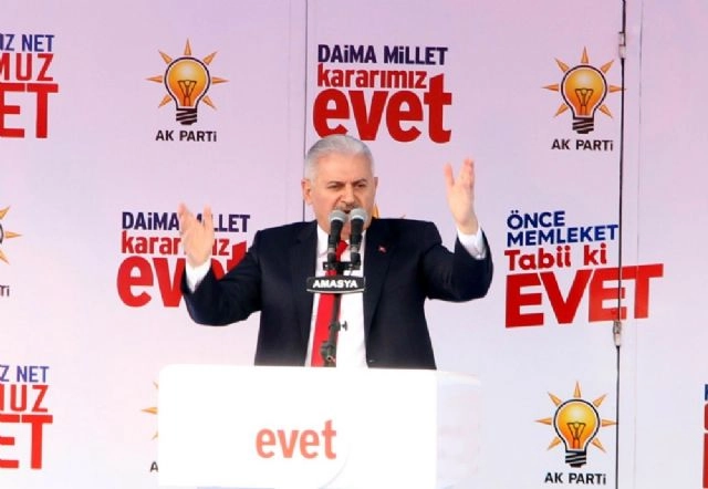 Başbakan Binali Yıldırım, Kemal Kılıçdaroğlu'nun 'Sandığa gideceksiniz, haysiyetiniz ve şerefinizle hayır diyeceksiniz' sözlerine, "Hadi oradan. Benim vatandaşım evet de hayır da dese onurlu ve şereflidir. Hayır diyenleri onurlu demeyenleri aşağılayacaksın yazıklar olsun size" diye yanıt verdi.Başbakan Binali Yıldırım, referandum için Anadolu'daki ilk mitingini Amasya'da gerçekleştirdi. Yavuz Selim Meydanı'nı dolduran 10 binlere hitap eden Başbakan Binalı Yıldırım, referandum mitinglerinde Anadolu'daki ilk duraklarının Amasya olduğunu söyledi. Yıldırım, "Anadolu'dayız. Anadolu'da ilk durağımız Amasya. Neden Amasya'da başlıyoruz. Elbette bunun bir manası var. Çünkü Gazi Mustafa Kemal Atatürk 19 Mayıs 1919'da Samsun'a çıkarken Amasya'ya geldi. Amasya'da İstiklal Mücadelesi'nin toplantısını yaptı. Amasya genelgesini buradan bütün dünyaya ilan etti. Amasya genelgesinde ne dedi Atatürk, 'Milletin istiklalini yine milletin aziz kararlılığı kurtaracak.' Milli Mücadele'nin, Kurtuluş Savaşı'nın ilk kararının verildiği yerdeyiz. İlk adımı burada attık ve ilk vurguyu bağımsızlık yolunda Amasya'da yaptık. Milli irade ilk defa 1919'da Amasya'da ifade edildi. Atatürk ve arkadaşları milletin kararını her şeyin üstünde tuttular. Cumhuriyeti milletle, milletin kararlılığıyla kurduk. Cumhuriyetimizi milletin iradesiyle bu günlere getirdik. İlk mitingimizi de Amasya'dan başlatıyoruz. Milletin istikrarını yine milletin kararlılığı kurtaracaktır. Söz milletindir, karar milletindir, yetki milletindir. Millet neyi uygun görürse o olur. Gerisi teferruattır. Biz AK Parti'yi sizlerle kurduk, bu yola beraber çıktık. Demokrasiyi daha güçlendirmek, çocuklarımıza daha aydın gelecek, daha fazla güvenlik ve daha fazla refah için yeni bir yolculuğa çıkıyoruz. 1919'da burada dediğiniz evetle birlikte Cumhuriyet kuruldu. İşte 16 Nisan'da yapılacak referandumun temelini de Amasya'da atıyoruz. Sizden bu şehre yakışır bir sonuç bekliyoruz. Bu Anayasa değişikliğini Erdoğan için değil, her doğan için yapıyoruz" diye konuştu."BUNLARIN HAYATI HAYIR"Yeni Anayasa ile ilgili eleştirilere cevap veren Yıldırım, "Meclis'in görevlerinin tırpanlandığı, görevlerin azaltıldığı külliyen yalan. Meclis aksine daha da güçleniyor. Hükumet kendi işini yapacak, Meclis kendi işini yapacak. Bir yanda yürütme, bir yanda yasama ve denetim. Canı sıkılınca cumhurbaşkanının Meclis'i feshedeceği külliyen yalan. Bunların hayatı hayır. Bunlardan hayır gelmez. Bunlar hangi işe evet dediler. Yavuz Sultan Selim Köprüsü'ne hayır, dünyanın en büyük havaalanına yine hayır, Marmaray'ı yaparsın bunlar yine hayırcı. Bunlar her hayırlı işin arkasında sürekli hayır diyerek işleri engelleyerek buraya geldiler" şeklinde konuştu."KISKANMA NE OLUR BİRAZ DAHA ÇALIŞ SENİN DE OLUR"Yıldırım şöyle devam etti: "Bazılar tek adam olacak diyor. Allah aşkına siz şimdi belediye başkanı seçiyorsunuz. Amasya'da iki tane belediye başkanımı var. Cumhurbaşkanı bir tane, doğru. Kılıçdaroğlu'nun hatırı için bir tane daha mı seçeceğiz. İstiyorsa gelsin muavin olsun engel yok. Bu sistemde ona da yer var. Kıskanma ne olur biraz daha çalış senin de olur. Kıskanma ne olur biraz da çalış senin de olur. Tek adam seçiyoruz ama iki sandık arasında yetki veriyoruz. Cumhurbaşkanı tamam ama güçlü olan millet. Milletten güçlü olan daha kimse yok. Sandıkta geliyor, sandıkta gidiyor.""ÜLKÜCÜ, MİLLİYETÇİ KARDEŞLERİME TEŞEKKÜR EDİYORUM"15 Temmuz gecesi Türk milletinin alçaklara dersini verdiğini belirten Yıldırım şunları söyledi: "O gece gençlerimizle yaşlılarımızla kadınlarımızla bu meydanlar hınca hınç doldu ve bu bayrağı indirtmediniz. Bu ezanları dindirtmediniz. Cuhurbaşkanını seçtik, şimdide Cumhurbaşkanlığı Hükumet Sistemini getiriyoruz. Bunun için Kılıçdaroğlu ve Bahçeli'ye 'siz de gelin ve birlikte yapalım' dedik. Bahçeli bu çağrımıza karşılık verdi ve 'önce milletim ve memleketim, sonra partim' dedi. Ülkücü, milliyetçi kardeşlerime de bu ülke için gösterdikleri gayretten ötürü teşekkür ediyorum. Biz CHP'de bizimle beraber bu yolda olsun istedik. Kılıçdaroğlu'na 'madem bu sisteme karşısın o zaman sen de anayasa değişikliği teklifi getir ikisini de Meclis'te oylayalım' dedik. 'İkisini de sunalım millet ne karar verirse o olur' dedik. Buna da 'yok' dedi. Çünkü bunlar halka güvenmek yerine mahkemelere güveniyorlar. Milletin kararını, Meclis'in kararını mahkemelere taşıyarak halkın iradesini yavaşlatmaya çalıştılar. Bunların Türkiye'nin hayrına hiçbir adıma evet dediklerini görmedik."KILIÇDAROĞLU'NA "HADİ ORADAN"Kılıçdaroğlu'nun geçenlerde "Sandığa gideceksiniz, haysiyetiniz ve şerefinizle hayır diyeceksiniz" dediğini belirten Yıldırım, "Hadi oradan. Benim vatandaşım evet de hayır da dese onurlu ve şereflidir. Hayır diyenleri onurlu demeyenleri aşağılayacaksın yazıklar olsun size" ifadelerini kullandı."BU DEĞİŞİKLİK TÜRKİYE'Yİ UÇURACAK""Bu değişiklik Türkiye'yi uçuracak" diyen Yıldırım şunları kaydetti: "Ülke sürekli büyüyecek, refah artacak. Terör belası Türkiye'nin gündeminden kaybolup gidecek. Gereksiz tartışmalar sona erecek. Bu topraklar üzerinden bir olacağız, iri olacağız diri olacağız, kardeş olacağız ve hep birlikte Türkiye olacağız. 2023'te Türkiye'yi dünyanın parmakla sayılır ülkeleri arasına sokmaya hazır mısınız? O halde kararımız 'evet'."Yıldırım; Samsun, Amasya, Çorum ve Kırıkkale hızlı tren projesinin de yapıldığını sözlerine ekledi. Başbakan Yıldırım, hükümetin Amasya'da yaptığı hizmetleri anlatarak konuşmasını tamamladı. (Murat Çelik A. - Kenan Akyüz / İHA)