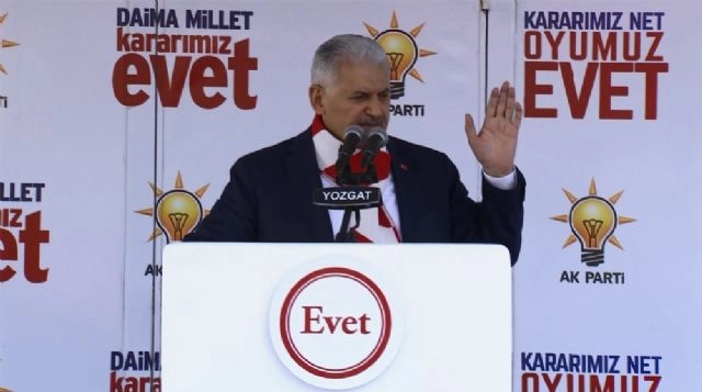 Başbakan Binali Yıldırım, CHP lideri Kılıçdaroğlu'nun sürekli yalan söylediğini ifade ederek, "Biz 14 senede 350 kilometre tünel yaptık Türkiye'de. Kılıçdaroğlu'nun yalanlarını arka arkaya dizsen 600 kilometre ediyor. Bu kadar da olmaz be kardeşim" dedi.Yozgat'ta düzenlenen referandum mitinginde konuşan Yıldırım, hayır cephesinin korku, kaos ve olumsuzluktan başka bir şey dillendirmediğini belirterek, "CHP'nin bu memlekete bir hayrı, güzel işi yok. CHP'den hayır gelmez" diye konuştu.Başbakan, Kemal Kılıçdaroğlu'nun 16 Nisan'da 'evet' çıkarsa kahvehaneler ve muhtarlıkların kapatılacağını, fabrikalara el konulacağını söylediğini hatırlatarak, "Yahu kardeşim, gün görmemiş yalan var bunda, gün görmemiş. Bu kadar olur mu ya! Biz 14 senede 350 kilometre tünel yaptık Türkiye'de. Kılıçdaroğlu'nun yalanlarını arka arkaya dizsen 600 kilometre ediyor. Bu kadar da olmaz be kardeşim" ifadelerini kullandı.Başbakan Yıldırım, CHP Milletvekili Hüsnü Bozkurt'un "referandumda 'evet' çıkarsa hepinizi denize dökeriz" sözüne de sert tepki göstererek, "Densiz, alçak, sen kimsin bu milleti böyle tehdit ediyorsun" dedi.