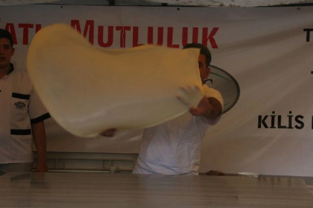 Kilis'te düzenlenen Kilis Katmeri Festivali'nde dünyanın en büyük katmeri açılarak Guinness Rekorlar Kitabı'na girildi.