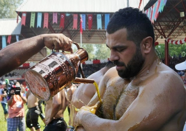 Trakya Birlik, Kırkpınar'da pehlivanların güreşlerde yağlanması için 2 ton zeytin yağını Edirne Belediyesine verildiğini bildirdi.Edirne'de bu yıl 10-16 Temmuz tarihleri arasında 656'ncısı düzenlenecek Tarihi Kırkpınar Yağlı Güreşlerinde, pehlivanların üzerine dökülen zeytin yağları Trakya Birlik tarafından karşılanıyor. Trakya Birlik, 2 ton zeytin yağını Edirne Belediyesine teslim ederken, ihtiyaç olması durumunda yağ takviyesinde bulunacağını bildirdi.(Ergin Yıldız / İHA)