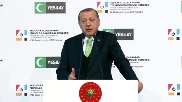 Cumhurbaşkanı Erdoğan, kitle imha silahına sahip ülkelere tepki göstererek, "İstediğin yerde kullanma hakkına sahip olacaksın, ama öbür tarafta diğerlerine diyeceksin ki 'Sen yapamazsın'. Sıkıntı bu. Bu da bağımlılık. Bu da zihni bağımlılıktır" dedi. Cumhurbaşkanı Recep Tayyip Erdoğan, Yeşilay'ın ev sahipliğinde WOW İstanbul Otel'de düzenlenen 4. Uluslararası Teknoloji Bağımlılığı Kongresi'ne katıldı. Kongreye Cumhurbaşkanı Erdoğan'ın yanı sıra eşi Emine Erdoğan, Başbakan Yardımcısı Recep Akdağ, Enerji ve Tabii Kaynaklar Bakanı Berat Albayrak, Yeşilay Genel Başkanı Mücahit Öztürk ve çok sayıda davetli katıldı. Yeşilay'ın giderek daha da yaygınlaşan teknoloji bağımlılığıyla verdiği mücadeleyi takdirle izlediğini söyleyen Erdoğan, "Her buluşun her teknolojik değişimin hayatımızda köklü değişikliklere sebep olduğu görülmüştür. Keşifler umut yanında çeşitli tartışmaları, korkuları, dirençleri beraberinde getirmiştir. Dünya, bir telefon markasının yeni modeli için saatlerce sıra bekleyen insanlar kadar teknolojisiz hayat kurmaya çalışan bireylerin de yeridir. Bize göre asıl mesele teknolojiyi nasıl anladığımız ve onu hayatımızın neresine yerleştireceğimizdir. Bizim yenilikle sorunumuz yoktur, olmaz da. 'İlim Çin'de de olsa alınız' diyen bir başka ifadeyle 'Sin'de de olsa alınız' diyen bir Peygamberin ümmeti olarak bizim ilmin ve bilimin kaynağıyla herhangi bir sıkıntımız yok. Biz modern tabirle teknofobik insanlar değiliz. Biz teknolojik ve bilimsel gelişmelerin nereden neşet ettiğine değil, niçin kullanıldığına bakarız. Bizim için kıstas teknolojinin fıtrata aykırı olmamasıdır" dedi. "KİTLE İMHA SİLAHLARI ÇIKTI, İNSANLIK BİTTİ"Her buluşun arkasında ona hayat veren bir zihniyette dünya algısı olduğunu söyleyen Cumhurbaşkanı Erdoğan, "Müslümanların atom bombası gibi kitlesel imha silahlarına öncülük etmemeleri geri kalmışlıklarından olamaz. Müslümanların zihin yapısına, hayata, insana, tabiata bakış açılarına aykırıdır. Maalesef dünyada güç savaşı istemesini dahi bu tür silahlara sahip olmanızı gerektiriyor. Bizim asıl karşı çıkmamız gereken atom bombasının kendisi kadar, onu ortaya çıkaran masum insanlar üzerinde kullanmayı meşru gören zihniyettir. Bugün nükleer başlıkları yasaklama anlayışını savunan zihniyetlere baktığınız zaman bir tanesinde 16 bin nükleer başlık var, bir tanesinde 12 bin 500 nükleer başlık var. Ama diyor ki 'Sen yapamazsın'. Sen de var. Felaket. İstediğin yerde kullanma hakkına sahip olacaksın, ama öbür tarafta diğerlerine diyeceksin ki 'Sen yapamazsın'. Hemen parmak sallamaya başlıyor. Sıkıntı bu. Bu da bağımlılık. Bu da zihni bağımlılıktır. Bizim asıl mücadele etmemiz gereken teknolojinin insanlığın adım adım kendi kıyametine doğru sürüklenmesinin aracı haline getirilmesidir. Dört asır önce koç yiğit Köroğlu, 'Tüfek icat oldu mertlik bozuldu' demişti. Biz de bugün diyoruz ki modern teknolojinin ürünü olan kitle imha silahları çıktı, insanlık bitti" diye konuştu. "EN BÜYÜK TEHLİKE TEKNOLOJİK ÜRÜNLERİN İNSANLA AYNI SEVİYEYE ÇIKARILMASI"Büyük bir tehlikeye de dikkat çeken Cumhurbaşkanı Erdoğan, "En büyük tehlike insan zihninin ürünü olan teknolojik ürünlerin adeta insanla aynı ontolojik seviyeye çıkarılması, adeta bir canlı bomba gibi kabul edilip, muamele görmesidir. Allah'ın yeryüzündeki halifesi olan hazreti insan, giderek varoluş gayesinden uzaklaşıyor. Kendi imal ettiği teknolojik aletlerin kölesi haline gelen insan, tıpkı cahiliye dönemindeki gibi yaratıcısına isyan halinde demektir. Teknoloji bağımlılığı gibi yeni problemlerin, yeni hastalıkların ortaya çıkmasının temel sebebi budur. Güney Kore, Çin, Singapur gibi teknolojiyi yoğun kullanan ülkeler bu tür sorunlarla bizden daha fazla karşı karşıya" şeklinde konuştu. "DAĞDAN KOPAN ÇIĞ GİBİ ÜZERİMİZE GELİYOR"İnternet kafelerin bittiğini, artık internet evlerin başladığını söyleyen Cumhurbaşkanı Erdoğan, "Evlerimiz bu hale döndü. 12-18 yaş arası kişinin yüzde 22'si internet bağımlılığın sınırı içinde. Öğrencilerin televizyon, cep telefonuna ayırdığı zaman günde ortalama asgari 6 saat. Buna karşılık ders dışı kitap, dergiye ayrılan zaman 1 saati dahi bulmuyor. Medyada saatlerce bilgisayar oynadığından hayatını kaybeden çocukların acı hikayeleriyle daha sık karşılaştık. Cep telefonuyla öz çekim yaparken düşen, kaza yapan, sakat kalan, hatta vefat eden insanlara dair haberleri kimi zaman tebessümle kimi zaman da yüreğimiz parçalanarak izliyoruz. Son model telefon alamadığı için suç işleyenleri görüyoruz. 'Gönül sohbetlerinin yerini sosyal medya aldı' tartışmaları. Mekke'de, Medine'de ibadetle meşgul olmak yerine telefonlarıyla vakit geçiriyor. Teknoloji maalesef bizi hayattan koparıyor. Bu kötü gidişi elbette eli kolu bağlı bir şekilde izlemeyiz. Harekete geçmediğimiz her gün sıkıntı büyüyecek. İstikbalimiz tehlike altında. Türkiye olarak diğer ülkelere göre dahi iyi konumdayız. Dağdan kopan çığ gibi üzerimize geliyor. Doğru teşhis doğru tedavinin ilk adımıdır. Teknoloji bağımlılığıyla mücadele ederken eskiye özlemle, geçmişe bakış açısıyla hiçbir yere varamayız. Gelecek için yapabileceklerimizin yollarını aramalıyız. Gençlerimizi anlayamazsak, onlara erişemeyiz. Çocuklarımızı beyhude yere teknolojiden uzak tutmak yerine onlara teknolojiyi bilinçli kullanmaların yollarını göstermeliyiz. Annenin babanın elinden tablet bırakmadığı zaman çocuğa teknolojiden uzak dur demek faydasız bir çaba olur" dedi. Kendi torunlarıyla yaşadığı bir örneği de anlatan Cumhurbaşkanı Erdoğan, "Aynı şeyi ben evde tor