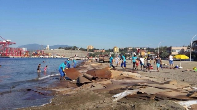 Bursa'nın en güzel sahillerinden Gemlik'in Gemsaz sahiline vuran suntalar, Büyükşehir Belediyesi tarafından temizlendi. NS Spirit isimli Moldova bayraklı gemiden denize düşen ve 2 kilometrelik sahili kaplayan tonlarca sunta, Bursa Büyükşehir Belediyesi ekiplerince temizlendi. Liman başkanlığı yetkileri ile sigorta şirketinin anlaşmazlığı yüzünden temizlenmeyen suntalar Büyükşehir'in sorumluluğunda olmamasına rağmen, belediyenin 13 kişilik ekibiyle denizden toplanıyor. Vatandaşlar liman başkanlığı ve sigorta şirketinin ihtilafı yüzünden yaşanan sıkıntıya tepki gösterdi. Sahile vuran suntalar belediye ekiplerince temizlendi.(Burak Türker / İHA)
