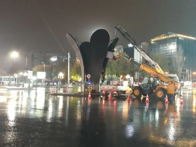 Ankara'da 15 Temmuz Kızılay Milli İrade Meydanı'nda bulunan ışıklı lale heykeli kaldırıldı.