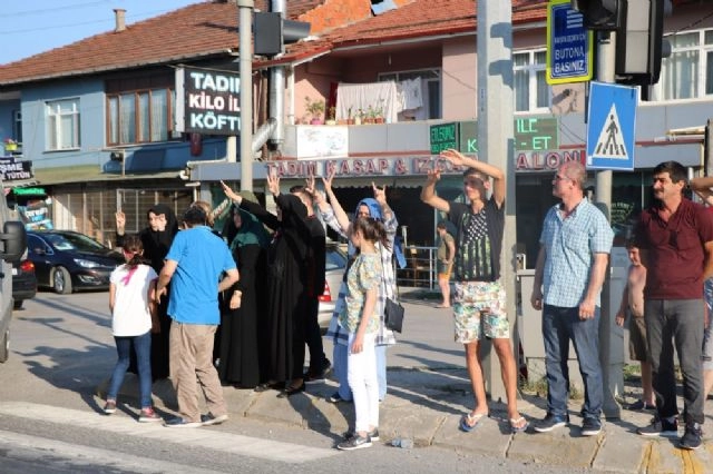 Kocaeli'nin Eşme ilçesinde CHP'nin adalet yürüyüşüne bir grup vatandaş Rabia işareti yaparak tepki gösterdi.CHP Genel Başkanı Kemal Kılıçdaroğlu, partisinin İstanbul Milletvekili Enis Berberoğlu'nun tutuklanmasının ardından başlattığı yürüyüşe 18. gününde devam ediyor. Serdivan Esentepe Meydanı'nda verdiği mola sonrasında saat 17.00'da tekrardan yürümeye başlayan Kılıçdaroğlu ve beraberindeki yürüyüşçüler kısa sürede Kocaeli il sınırına vardı. Kılıçdaroğlu dinlenmek için mola verirken grup yürüyüşe devam etti. Bu sırada Kocaeli'nin Eşme ilçesi girişinde bir grup vatandaş Rabia işareti yaparak yürüyüşü protesto etmek istedi. Bunun üzerine Kocaeli İl Emniyet Müdürlüğü Çevik Kuvvet Şube Müdürlüğü ekipleri yürüyüşe tepki gösteren gruba dağılmaları yönünde uyarılarda bulundu. Uyarılara rağmen dağılmayan grup ile polis ekipleri arasında kısa süreli gerginlik yaşandı. Polis grubu sakinleştirerek olay yerinden uzaklaştırdı.(Burak Can Tokyürek - Remzi Şimşek/İHA)