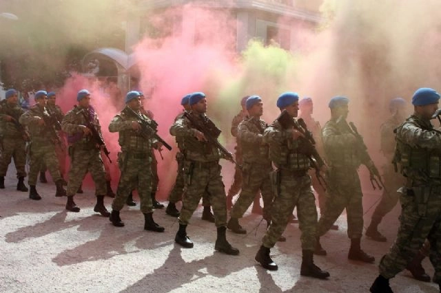 Bolu'da, sağanak yağış nedeniyle ertelenen 30 Ağustos Zafer Bayramı kutlamaları bugün görkemli bir şekilde gerçekleşti. 30 Ağustos Zafer Bayramı kutlamaları dün Anıt Park'ta çelenk koyma töreniyle başlamış fakat sağanak yağış nedeniyle programın devamındaki etkinlikler bugüne ertelenmişti. Bugün, Demokrasi Meydanı'ndaki kutlama töreni saygı duruşu ve İstiklal Marşı'nın okunmasıyla başladı. Vatandaşların büyük ilgi gösterdiği kutlamalarda, Vali Aydın Baruş, Belediye Başkanı Alaaddin Yılmaz ve 2'inci Komando Tugay Komutanı Tuğgeneral Aydoğan Budakçı, katılanların ve askerlerin bayramını kutladı. Çeşitli etkinliklerle devam eden kutlamaların ardından Kıbrıs Barış Harekatı ve PKK'ya karşı sınır ötesi operasyonlardaki başarıları nedeniyle iki kez 'Üstün Cesaret ve Feragat Madalyası' ile ödüllendirilen 2'nci Komando Tugay Komutanlığı'ndaki komandolar görkemli bir geçiş yaptı.Yüzleri boyalı ve kar kıyafetli komandoların marşlar eşliğinde yaptıkları yürüyüşe, törene katılan vatandaşlar ellerindeki Türk bayraklarını sallayarak karşılık verdiler.(Faruk Çidem /İHA)