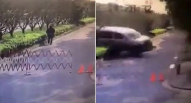 Çin'de kontrolden çıkan bir minibüs kaldırımda yürüyen adamı ezdi.