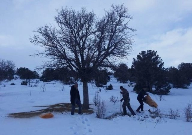 Konya'da ağır kış şartları nedeniyle aç kalan ve yem bulmakta zorlanan kuşlar için milli parklar ekipleri doğaya yem bıraktı.