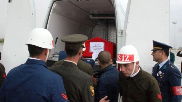 Tunceli'nin Nazimiye kırsalında teröristlerle çıkan çatışmada şehit olan Jandarma Uzman Çavuş Ahmet Erol'un naaşı askeri uçakla Konya'ya getirildi. Teröristlerle çıkan çatışmada şehit olan Jandarma Uzman Çavuş Ahmet Erol'un naaşı askeri uçakla Konya Havaalanı'na getirildi. Askeri ve mülki erkan tarafından karşılanan şehidin Türk bayrağına sarılı tabutu, tören mangası tarafından omuzlara alınarak cenaze aracına taşındı. Şehidin naaşının cenaze aracına götürülmesi sırasında şehidin ablası Havva Kaya ve yakınları gözyaşlarına hakim olamadı. Şehidin cenazesi törenin ardından defnedilmek üzere memleketi Seydişehir ilçesine götürüldü.(Mustafa Beşer /İHA)