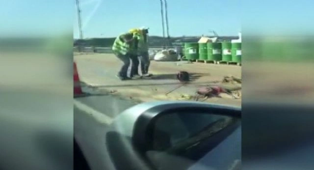 15 Temmuz Şehitler Köprüsü'nde yol yapım çalışmaları sırasında işçiler, mola esnasında halay çekip eğlendi. İşçilerin renkli görüntüler oluşturduğu o anlar ise bir vatandaş tarafından cep telefonu ile görüntülendi.