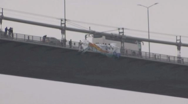 Genç Aktivistler Derneği tarafından 15 Temmuz Şehitler Köprüsü'ne, 'Kudüs İslam'ındır' yazılı 450 metrekarelik dev pankart asıldı.
