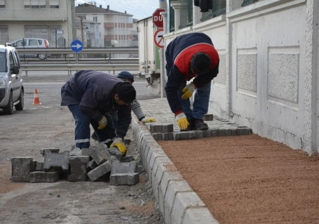 Körfez Belediyesi Fen İşleri Müdürlüğü ekipleri, ilçedeki kaldırımları yeniliyor.