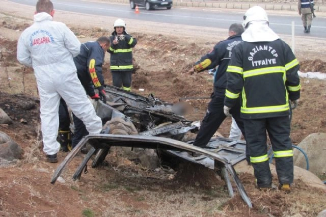 Gaziantep'te takla atan araç yanarak kül oldu. Araç içerisinde bulunan 3 kişi yanarak feci şekilde can verdi.