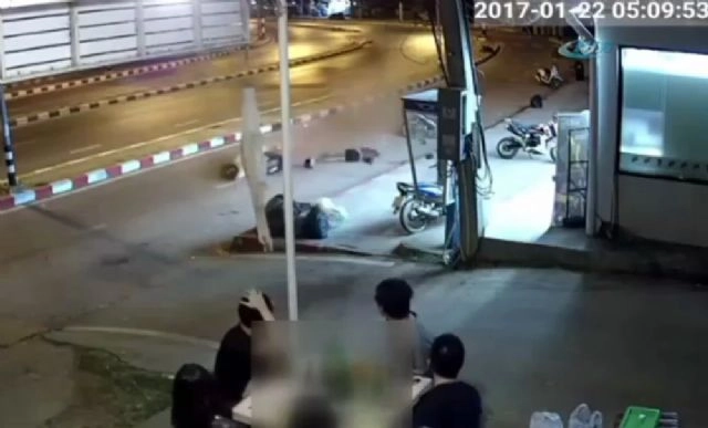 Hız yapan motosikletli virajı alamayınca böyle kaza yaptı. Korkunç kaza Tayland'da gerçekleşti. Motosikletli viraja hızlı girince kaza da kaçınılmaz oldu. Aracının direksiyon hakimiyetini kaybeden sürücü önce refüje ardından karşı şeride geçip sürüklenerek kaldırıma çarptı. Ağır yaralanan motosikletli çevredekilerin yardımıyla hastaneye kaldırılırken, feci kaza güvenlik kamerasına yansıdı.