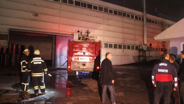 Düzce'de Organize Sanayi Bölgesi'nde bir elyaf fabrikasında çıkan yangında 5 işçi dumandan zehirlendi.