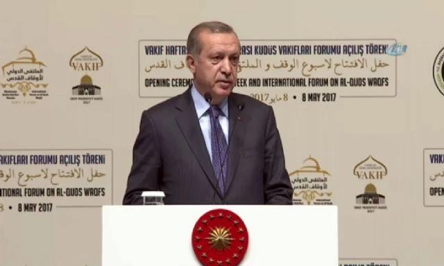 Cumhurbaşkanı Recep Tayyip Erdoğan, Kudüs'e sahip çıkmanın her Müslüman'ın görevi olduğunu belirterek, "Kudüs'ün tekrar barış, huzur ve güven şehri olması için gayret sarf ediyoruz. Ümmetin ilk kıblesi, peygamberler şehri olan Kudüs; tüm Müslümanların harem-i izzeti ve namusudur" dedi. Cumhurbaşkanı Recep Tayyip Erdoğan, Vakıf Haftası ve Uluslararası Kudüs Vakıfları Forumu açılışına katıldı. Haliç Kongre Merkezi'nde düzenlenen toplantıda konuşan Erdoğan, "Gerektiğinde evladı için vücudunu kahpe kurşunlarına siper eden Filistin'in fedakar babalarını selamlıyorum. Evinden barkından edilmiş, kimi vatan hasretiyle hayata veda etmiş 8 milyon Filistinli kardeşime selamlarımı ve dualarımı gönderiyorum. Hangi dinden, milletten olursa olsun Kudüs için mücadele eden, Filistin'deki adaletsizliği ve işgali gidermek için çaba harcayan tüm vicdan sahiplerine saygılarımı yolluyorum" dedi. "Biz Mescid-i Aksa dediğimiz zaman onu orada Harem-i Şerif olarak ifade etmeyi eksik görüyoruz. Kubbet-üs Sahra'da hepsi içindedir. Kimse kimseyi aldatmasın. Bunun mücadelesini bütünüyle bu şekilde veriyoruz" diyen Cumhurbaşkanı Erdoğan, "Kudüs 3 semavi din için de kutsal bir şehirdir. Bütün insanlık tarihinin özüdür, özetidir. Filistin'in milli şairi merhum Mahmut Derviş, 'Kadim surlar içinde yürüyorum Kudüs'te, bir zaman diliminden diğerine' dizeleri ile Kudüs'ün bu vasfını çok güzel anlatır. Nuri Pakdil de Kudüs'ün zamanı ve mekanı aşan önemini kelimelere şöyle döker; 'Tur Dağı'nı yaşa ki, bilesin nerede Kudüs. Ben Kudüs'ü kol saati gibi taşıyorum. Ayarlanmadan Kudüs'e boşuna vakit geçirirsin, buz tutar gözün, görmez olur. Kudüs'te zaman bizim bildiğimiz vakitlere göre değil, kendi mecrasına akar. Kudüs aşktır, hasrettir. İnsanlığın gönlünün nuru, gönlünün sürurudur. Kudüs yeryüzünde arşı alaya en yakın yerdir. Çünkü Kudüs İsra'nın ikinci durağı, miracın ilk basamağıdır. Kudüs tüm Müslümanların harem-i izzeti ve namusudur. Burada bizlere pusula olması için bir hadisi şerifi nakletmek isterim. Bir gün Hz. Meymune, Peygamber Efendimize Mescid-i Aksa için 'Hüküm nedir?' diye sorar. Bunun üzerine Efendimiz, 'Oraya gidin ve orada namaz kılın' buyurur. Hz. Meymune tekrar sorar; 'Gidemezsek ne yapmamız gerekir?' Efendimiz o zaman kandillerinde yakılmak üzere yağ gönderin der. Efendimiz bir başka hadislerinde yolculuk yalnız üç mescidedir, Mescid-i Haram, Mescid-i Nebevi ve Mescid-i Aksa'dır diye buyurmuşlardır" dedi."BU FORMUN VAKIFLARIN GÜÇLENDİRİLMESİ NOKTASINDA ULUSLARARASI ÇALIŞMALARA IŞIK TUTACAĞINA İNANIYORUM" Konuşmasında Kudüs'ün önemine vurgu yapan Cumhurbaşkanı Erdoğan, "Kudüs'e sahip çıkmak her Müslüman'ın görevidir. Kudüs davası sadece Filistinli kardeşlerimizin davası değildir. Gerek inancımızdan, gerekse tarihimizde tevarüs ettiğimiz sorumlulukla Kudüs'e, Kudüs davasına, Filistinli kardeşlerimizin hak ve adalet mücadelesine büyük önem veriyoruz. Kudüs'ün tekrar barış, huzur ve güven şehri olması için gayret sarf ediyoruz. İstanbul'da ev sahipliğimizde toplanan 13. İslam Zirvesi tarihi bir karara imza atarak Filistin halkının ve Kudüs şehrinin ekonomik olarak güçlendirilmesi çağrısında bulundu. Şahsım bu hedefe katkı sağlamaya özellikle ihtimam gösteriyoruz. Vakıf müessesi bu amaçlarımızı gerçekleştirmek için biçilmiş kaftandır. Tarih boyunca onlarca saldırı ve yıkıma rağmen ayakta kalabilmemizde vakıf geleneğimizin büyük katkısı vardır. Kudüs bir vakıf hazinesidir. Kudüs'ün tarihine baktığımızda Hz. Ömer'den Selahattin Eyyübi'ye, günümüze kadar vakıfların izini görürüz. Suriye'de de böyle değil miydi. Ama şimdi Suriye'de bütün o vakıf eserleri yer ile yeksan oluyor. Gerek hayır işlerinde, gerek Mescid-i Aksa'nın İslami karakterinin korunmasında vakıfların büyük rolü var. Selahattin Eyyübi'nin Kudüs'ün fethinin ardından Burak duvarının yanına kurulan mahalle bir vakıf mahallesidir. 1967 işgali sonrası bu mahalle 800 yıllık geçmişi ile birlikte buldozerlerle yok edilmiştir. Bu mesele dahi Filistin sorununun küçük ölçekte bir özetidir. Bir diğer vakıf Haseki Sultan İimareti'dir. Bu müessese yüzyıllardır aç ve muhtaçlara yardımda bulunuyordu. Bugün İslam müzesini ziyaret edenler bu vakfın zamanında emek dağıttığı kazanları, yardımdan yararlananların isimlerinin yazılı olduğu o çizelgeleri görecektir. Kudüs'teki tarihi vakıflarımızı bizi geleceğe taşıyacak kurumlar olarak görüyorum. 50 yıldır işgal altında olan Kudüs'te vakıflarımız ihya etmek için yoğun çaba sarf ediyoruz. Bizlerin görevi Kudüs'e, vakıflara ve oradaki tüm eserlere destek olmaktır. Bu kavramın içine sadece İslam vakıfları girmiyor, diğer dinlerin vakıflarını da aynı çerçevede değerlendiriyoruz. İslam idaresinde Kudüs'te hangi dine mensup olursa olsun herkesin canı, malı, ibadet hürriyeti, örfü adeti güvence altına alınmıştır. Haçlı seferlerinde kılıçtan geçirilen Kudüs'ün Yahudi halkı, ancak fetihten sonra Müslümanların himayesinde Kudüs'e geri dönebilmiştir. Bizim bugüne ve geleceğe bakışımız da bu temeldedir. Bu formun vakıfların güçlendirilmesi noktasında uluslararası çalışmalara ışık tutacağına inanıyorum" dedi. "YÜZ BİNLER NİÇİN TÜRKİYE'DEN MESCİD-İ AKSA'YI ZİYARETE GİTMESİN" Müslümanlar olarak Kudüs'ün, Mescid-i Aksa'nın sık sık ziyaret edilmesi gerektiğini belirten Cumhurbaşkanı Erdoğan, "İstatistiklere baktığımızda bu konuda ciddi bir eksiğimizin olduğunu görüyorum. 2015 yılında yaklaşık 600 bin Amerikalı, 400 bin Rus, 300 bin Fransız Kudüs'ü ziyaret etmiştir. Müslüman ülkeler arasında en fazla Türkiye'den ziyaretçi gitmiş. Giden z