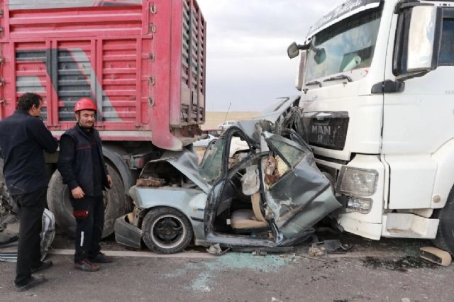 Aksaray'da kum fırtınasından dolayı meydana gelen zincirleme trafik kazasında 2 kişi hayatını kaybetti, 19 kişi yaralandı. Kaza, saat 15.00 sıralarında Aksaray-Konya Karayolunun 8. kilometresinde meydana geldi. Edinilen bilgiye göre, kum fırtınasından dolayı karayolunda görüşün kaybolmasıyla meydana gelen üç ayrı zincirleme trafik kazasında otomobil, tır ve kamyonetlerden oluşan toplam 19 araç birbirine girdi. Kazada, 68 AB 420 plakalı otomobilde bulunan Yakup Bölükbaş (45) ve kızı Büşra Bölükbaş (20) olay yerinde hayatını kaybederken, 19 kişi yaralandı. Kazada, araçlarda sıkışanlar da AFAD ve itfaiye ekipleri tarafından kurtarıldı. Yaralılar ambulanslarla Aksaray Eğitim ve Araştırma Hastanesine sevk edilerek tedavi altına alındı. Kaza yerindeki araçların kaldırılmasının ardından karayolunun temizlenmesi için de çalışma başlatıldı.Kazada hayatını kaybeden baba ile kızının cansız bedenleri ise otopsi yapılmak üzere Aksaray Eğitim ve Araştırma Hastanesi morguna kaldırıldı. Kazayla ilgili soruşturma sürüyor.(Yasin Can/İHA)