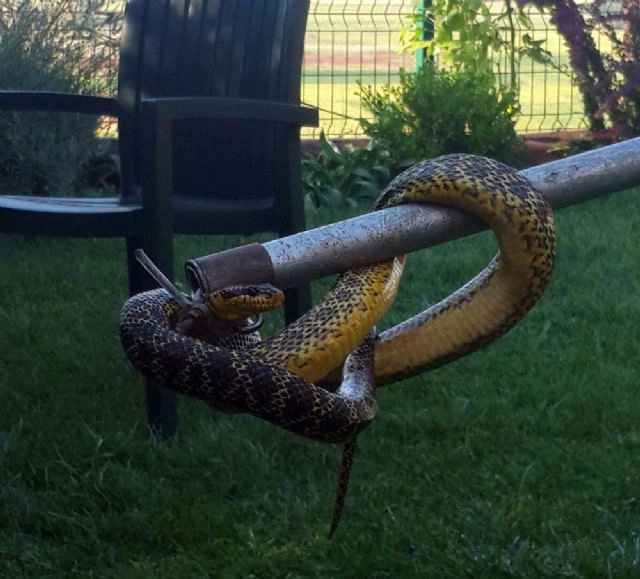 Bursa'nın İnegöl ilçesinde bir sitede bulunan kuş yuvasında dev yılan yakalandı.