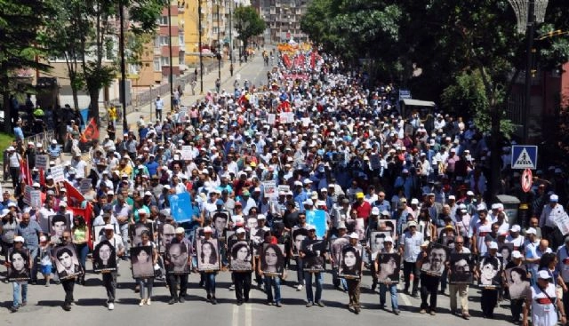 Sivas'ta 1993 yılında Madımak Oteli'nin ateşe verilmesi sonucu ölen 35 kişi anıldı.2 Temmuz 1993'de Pir Sultan Abdal Şenlikleri sırasında Madımak Oteli'nin ateşe verilmesi sonucu hayatını kaybeden 33 aydın ve 2 otel görevlisi 35 kişi için kortej yürüyüşü düzenlendi. Seyrantepe Mahallesi'nde toplanan yaklaşık 4 bin kişi yürüyüş öncesi emniyet ekipleri tarafından arama noktalarında arandı. Ekipler yürüyüş güzergahında geniş güvenlik önlemleri aldı. Yürüyüş güzergahında bulunan araçlar ve çöp kutuları güvenlik için bulunduğu yerden kaldırıldı. Polis helikopteri de alanda güvenlik uçuşu yaptı.Seyrantepe Mahallesi'nden başlayan yürüyüş, Mevlana Caddesi'ni takip ederek, Cumhuriyet Meydanı ve Atatürk Caddesi üzerinden şu anda Sivas İl Özel İdaresi tarafından Bilim ve Kültür Merkezi olarak dönüştürülen eski Madımak Oteli önüne kadar devam etti. Yürüyüşe otelde hayatını kaybedenlerin yakınları, Cumhuriyet Halk Partisi (CHP) Genel Başkan Yardımcısı Sezgin Tanrıkulu, CHP Çorum Milletvekili ve Meclis İdari Amiri Tufan Köse, CHP Ankara Milletvekili Şenal Sarıhan, CHP Sivas Milletvekili Ali Akyıldız, HDP Şanlıurfa Milletvekili ve Parti Sözcüsü Osman Baydemir, HDP İzmir Milletvekili Müslüm Doğan, alevi dernekleri ile vatandaşlar katıldı. Kortej yürüyüşünde olayda hayatını kaybedenlerin yakınları, ailelerinin fotoğraflarını taşıdı. Çeşitli dövizlerin taşındığı yürüyüşte sloganlar atıldı.KARANFİL BIRAKILDI, GÖZYAŞI DÖKÜLDÜYürüyüşün ardından otel önünde duygusal anlar yaşandı. Bazı aileler gözyaşlarını tutamazken, olayda hayatını kaybedenlerin anısına aileler karanfil bıraktı. Bilim ve Sanat Merkezi olarak hizmet veren eski Madımak Oteli'nin utanç müzesi olması taleplerini dile getiren aileler, merkezin içerisine girmedi. Olayda hayatını kaybedenlerin isimleri okunarak saygı duruşunda bulunuldu. Daha sonra semah dönülerek, saz çalındı.CHP Genel Başkan Yardımcısı Sezgin Tanrıkulu, "1993'te sadece Madımak Oteli yanmadı, insanlarımız yanmadı, insanlık yandı, yanmaya devam ediyor. Onun için adalet diyoruz, onun için adalet için yürüyoruz" dedi.CHP Ankara Milletvekili Şenal Sarıhan ise "Madımak yangınından sonra 24 yıldır bir adalet arayışı içerisindeyiz. Mahkemelerde her yolu denemeye çalıştık. Adalet sağlansın, katiller bulunsun. Arkalarındaki örgütler ele geçirilsin diye elimizden gelen bütün olanakları kullandık. Ama ne yazık ki yargıdan alabildiğimiz sonuç 15 bin kişinin bu olayın faili olduğunun polis kayıtlarına rağmen bilinmesine karşın sadece 180 kişi yargı önüne geldi. Sonuç olarak bir avuç insana ceza verildi. Oysa o örgütlerin kimlikleri o örgütlerin bu olaydaki katkıları saptanmış olsaydı. Belki Türkiye bugün anti laik ve anti demokratik ortamdan uzaklaşmış olacaktır. Biz burada CHP'li vekiller olarak adalet için yürüyen arkadaşlarımızın adalet arayışıyla Sivas'taki adalet arayışımızı buluşturuyoruz. Bizim 24 yıldır burada sürdürdüğümüz mitingler aslında yargının adaleti bulmamasının sonucudur. Buradan halka ulaşmaya çalışıyoruz. Türkiye'nin ortasından, Sivas'tan, katliamın olduğu merkezden bütün Anadolu'ya adalet çığlığımızı duyurmaya çalışıyoruz" diye konuştu."AYDINLIKTAN KORKANLAR GENÇLERİMİZE KIYDILAR"HDP Şanlıurfa Milletvekili ve Parti Sözcüsü Osman Baydemir de, "Bir kez daha Sivas'tan bütün Türkiye'ye ve bütün Ortadoğu coğrafyasına karanlığı yaracak bir ışığa, bir aydınlığa ortak olmaya geldik. 24 yıl önce aydınlıktan, ışıktan korkanlar bu ülkenin gencecik, pırıl pırıl, aydınlık yüzlerini kırdılar. 33 aydınımızı, 35 canımızı burada yitirdik. Onlar aydınlığı yok etmek istediler. Diri diri canları yaktılar. Ama hesaba katmadıkları bir şey vardı. O yangın, o ateş, o bilinçle buluştu ve bütün Ortadoğu coğrafyasına bir mücadele azmini miras olarak bıraktılar. Bu katliam göz göre göre gelen bir katliamdır. Önlem alınmadı. Sorumluluk sahipleri maalesef yargılanmadı. Bu katliam insanlık ailesine karşı bir suçtu. Maalesef zaman aşımını uyguladılar. Oysa milyonlarca yüreklerde bu katliam zaman aşımına uğramadı, uğramayacak" şeklinde konuştu. (Onur Erden - Veysel Korkmaz - Aydemir Kadıoğlu - Uğur Yiğit - Hakan Kaleli / İHA)