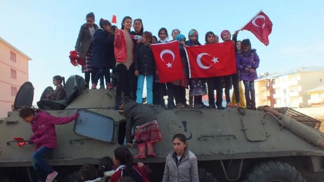 Muş'un Malazgirt ilçesinde düzenlenen etkinlikte, birçoğu köylerden gelen öğrenciler ilk kez jandarma ve polise ait zırhlı araçlara binerek tur attılar. Yıllarca terörün gölgesinde kalmış Malazgirt ilçesinde barış ve huzurun sağlanmasıyla Malazgirt Kaymakamı ve Belediye Başkan Vekili Soner Kırlı'nın talimatları doğrultusunda Alparslan Kız Anadolu İmam Hatip Lisesi bahçesinde "Polis, Jandarma, Özel Hareket ve Öğrenciler El Ele" etkinliği düzenlendi. Etkinlikte; Malazgirt İlçe Jandarma Komutanlığı ve İlçe Emniyet Müdürlüğüne ait zırhlı araçlara alınan minik öğrenciler, okul bahçesinde renkli saatler yaşadılar.Alparslan Kız Anadolu İmam Hatip Lisesinde yatılı kaldıkları için çok fazla sosyal aktiviteleri olmayan öğrenciler, polis ve jandarma personelinin örnek davranışı sayesinde keyifli saatler yaşadılar. Öğrenciler, İlçe Jandarma Komutanlığının 'Kirpi' adı verilen zırhlı aracına binerken ve inerken, "en büyük asker bizim asker" diyerek sevgi gösterisinde bulundular.Yaşadıkları sevinç ve heyecan gözlerimde okunan öğrenciler, kendilerine bu imkânları tanıyan Kaymakam Soner Kırlı'ya, polise ve jandarma personeline teşekkür ettiler.(Veysel Eşin /İHA)