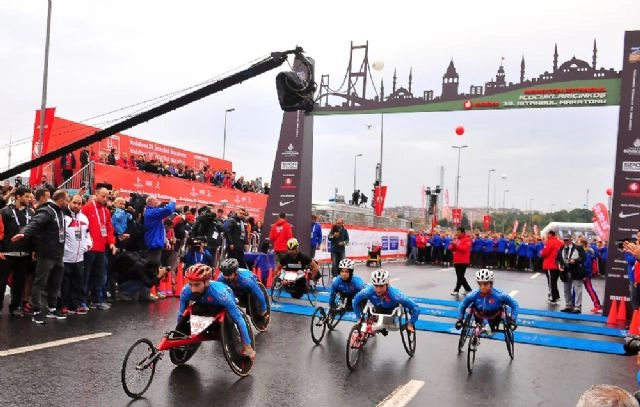 39. Vodafone İstanbul Maratonu'nda ilk startı alan engelli koşucular, performanslarıyla dikkat çekti. Arabalarıyla yarışan engelli yarışmacıların özellikle köprü çıkışındaki rampadan geçişleri alkış aldı. 39. Vodafone İstanbul Maratonu'nda ilk startı alan engelli koşucular, engel tanımadılar. 15 Temmuz Şehitler Köprüsü'nün ardından başlayan rampada durmak bilmeyen engelliler, adeta engel tanımadılar. Yoğun güvenlik önlemleri altında başlayan yarışta, sağlık ekipleri de koşucuları adım adım takip etti. Engelli yarışmacıların ardından başlayan maraton startının ardından oluşan görüntüler ise görülmeye değerdi. Altunizade'den verilen startın ardından 15 Temmuz Şehitler Köprüsü'ne doğru koşmaya başlayan koşucular, bir anda boş köprünün üzerini doldurdu. Polis helikopterlerinin havadan takip ettiği maratonda, emniyet güçlerinin yanı sıra zabıta ekipleri de görev aldı. Birçok sivil toplum kuruluşunun yanı sıra vakıflar da maratonda yer aldı.(Bozhan Memiş - Mehmet Şirin Topaloğlu / İHA)