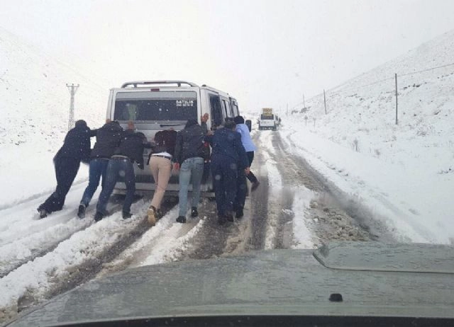 Van'ın Özalp ilçesiyle kentin yüksek kesimlerinde etkili olan kar yağışı hayatı olumsuz etkilerken, Güzeldere Geçidi'nde araçlar mahsur kaldı.Özalp ilçesinde sabaha karşı etkisini gösteren kar yağışı hayatı adeta durma noktasına getirdi. Her tarafın beyaz örtüyle kaplandığı ilçede, kar yağışına ise en çok çocuklar sevindi. Çocuklar, kartopu oynayarak mayıs ayının son haftalarında karın tadını çıkardı. Çiçek açan ağaçlar ile ekili alanlar kar altında kalırken, çiftçiler olası don olayından korkuyorlar.Van-Hakkari karayolu üzerindeki Güzeldere Geçidi'nde etkili olan kar yağışı işe ulaşımda aksamalara neden oldu. Kar kalınlığının 10 santimetreyi geçtiği geçitte, birçok araç ise yolda kaldı. İteklenerek kurtarılan araçlar yollarına devam ederken, vatandaşlar ise bu mevsimde etkili olan karın şaşkınlığını yaşadıklarını söylediler.(Nihat Özbay - Erkan Çapraz / İHA)