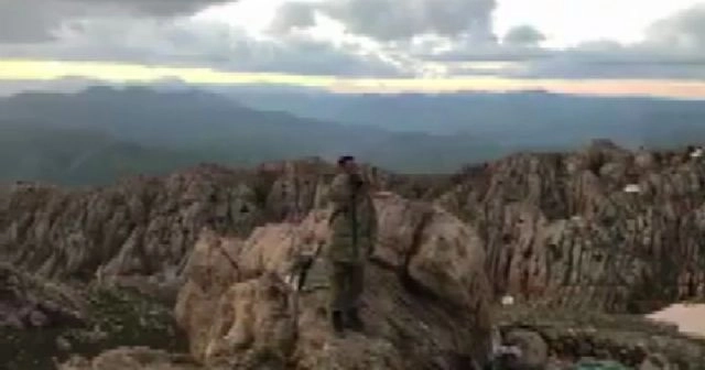 Bölücü terör örgütüyle mücadeleye devam eden Mehmetçik, Kato Dağı'nda bir askerin okuduğu akşam ezanıyla birlikte iftar yaptı. Ramazan ayında da bölücü terör örgütüyle mücadele operasyonlarına devam eden Mehmetçik, Kato Dağı'nın zirvesinden bir askerin okuduğu akşam ezanıyla iftar yaptı. Başka bir asker tarafından kaydedilen görüntülere, iftar vaktinin gelmesiyle birlikte yüksek bir kayanın üzerine çıkarak, gür bir sesle akşam ezanını okuyan asker yansıdı. Askerin açık arazide yankılanan ezan sesiyle birlikte görev başındaki Mehmetçik oruç açtı. (Musa Erdoğan - Caner Ünver / İHA)
