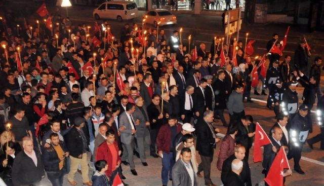 Mersin'in Erdemli ilçesinde 18 Mart Çanakkale Zaferi ve Şehitleri Anma Günü dolayısıyla mehterli, fener alaylı zafer yürüyüşü gerçekleştirildi.Erdemli Belediyesi öncülüğünde gerçekleştirilen programda Erdemli Cumhuriyet Meydanı'nda toplanan vatandaşlar, Mehteran takımıyla birlikte Mersin-Antalya D-400 Karayolu üzerinde, ellerindeki fenerler ve bayraklarla sahil bandındaki kültür merkezine kadar yaklaşık 1,5 kilometrelik güzergahta yürüyüş gerçekleştirdi. Yürüyüş esnasında vatandaşlar "Vatan sana canım feda" sloganları attı. Yürüyüş esnasında gençler tarafından dev bir Türk Bayrağı da açıldı. Yürüyüşe Erdemli Kaymakamı Muhittin Pamuk, Erdemli Belediye Başkanı Mükerrem Tollu, İlçe Emniyet Müdürü Ali Doğan, İlçe Jandarma Komutanı Yüzbaşı Mehmet Derin, İlçe Müftüsü Mahmut Sami Türkmenoğlu, AK Parti Erdemli İlçe Başkanı Mehmet Topçu, MHP İlçe Başkanı Bekir Özsu, şehit yakınları, gaziler ve vatandaşlar katıldı.Yürüyüş öncesi ve sonrasında vatandaşlara sıcak çorba ikram edildi.(Oktay İnce / İHA)