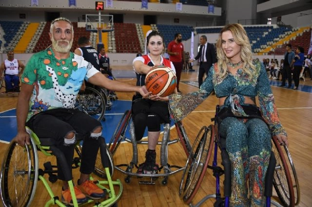 Mersin Büyükşehir Belediyesi tarafından dünyada ilk kez düzenlenen 1. Mersin Uluslararası Engelsiz Sanat Festivali kapsamında basketbol gösteri maçı gerçekleştirildi. Sanatçı Tarık Mengüç ve Milli Atlet Sema Aydemir de tekerlekli sandalyeye oturarak engelli sporcularla mücadele etti.