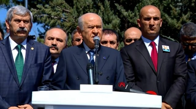 MHP Genel Başkanı Devlet Bahçeli, 'Merhum Türkeş Bey Türkiye Cumhuriyeti'ne evet dedi. Biz de bugün evet diyoruz, kurucu genel başkanımızın sözünü sahiplenip kararlıca seslendiriyoruz' dedi.