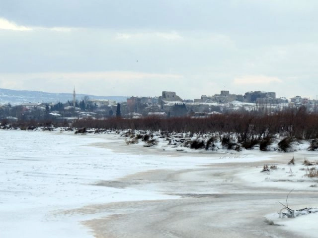 Edirne'de Meriç Nehri'nin Saros Körfezi'ne döküldüğü ağız kısmı, aşırı soğuklar nedeniyle buz tuttu.
