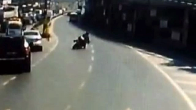 İstanbul Merter'de kararsız bir sürücünün ani manevrası, hatalı şekilde ana yola bağlanmaya çalışan motosikletliyi yola savurdu.Kaza, geçtiğimiz hafta D-100 Karayolu Merter mevkiinde meydana geldi. Edinilen bilgiye göre Merter yanyolda Topkapı istikametine seyir halinde bulunan bir motosiklet D-100 karayoluna bağlanmak istedi. Hatalı bir sollama yaparak ana yola bağlanmak isteyen motosikletli, bağlantı noktasında gideceği yön konusunda kararsızlık yaşan bir otomobilin ani manevrası ile karşılaştı. Otomobil sürücüsünün ani manevrasından kaçmak isteyen motosikletli direksiyon hakimiyetini kaybederek yola savruldu. Kazanın oluşmasında etkisi bulunan otomobil sürücüsü ise ardına bile bakmadan yoluna devam ederken kaza anı ve sonrası başka bir otomobilin araç kamerasına yansıdı.Görüntülerde, D-100 yan yolda seyir halinde bulunan motosikletlinin hatalı şekilde ana yola bağlanmak istediği görülüyor. Bu sırada bağlantı noktasında kararsızlık yaşayan bir otomobilin önce manevra yaparak yan yola yöneldiği ardından ise ana yola döndüğü görülüyor. Otomobilin ani manevrasından kendisini kurtarmaya çalışan motosikletli, direksiyon hakimiyetini kaybederek yola savruluyor. Görüntülerde kazayı gören bir sürücünün motosikletlinin yardımına koştuğu görülürken, önce yavaşlayan otomobilin ise sonra hiçbir şey olmamış gibi yoluna devam ettiği görülüyor.